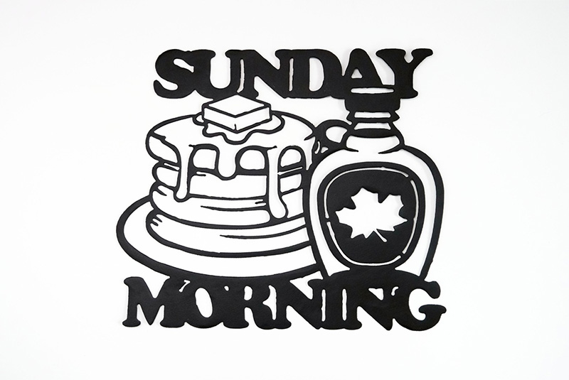 This delightful sign captures the essence of a perfect Sunday, featuring a stack of fluffy pancakes dripping with syrup and a classic maple syrup jug, all beneath the inviting “SUNDAY MORNING” text.Ideal for your kitchen, dining area, breakfast nook, or even a cozy cafe, this sign adds a touch of rustic warmth and sweetness to any space.